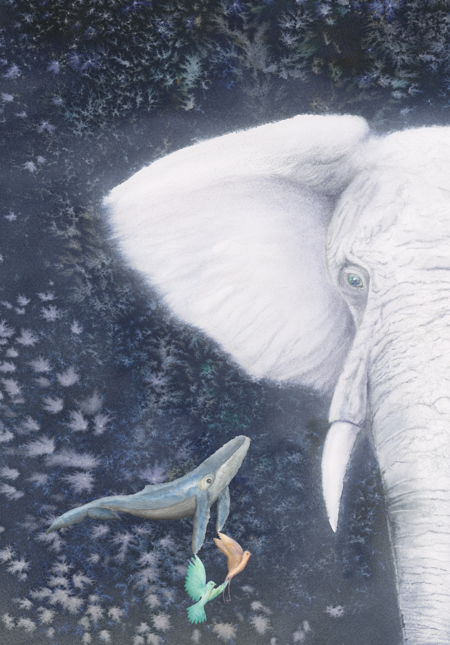 Hand signed and numbered, from the limited edition 'Elegy for an Elephant' release series. For a variation without the whale and birds, email your request to narrativesofnature@gmail.com.
