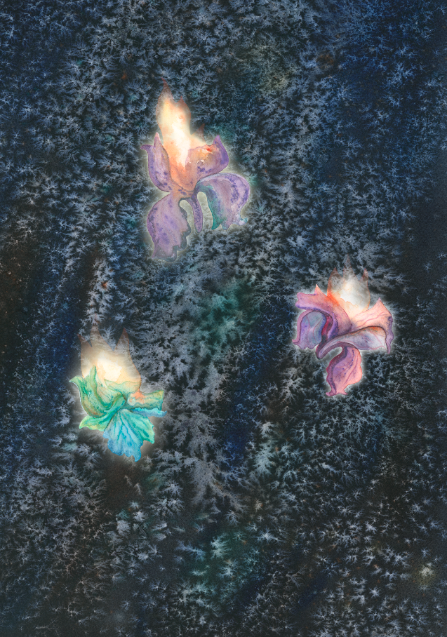 'Flame flowers floating on stars' - Archival Artisan Giclée Print.